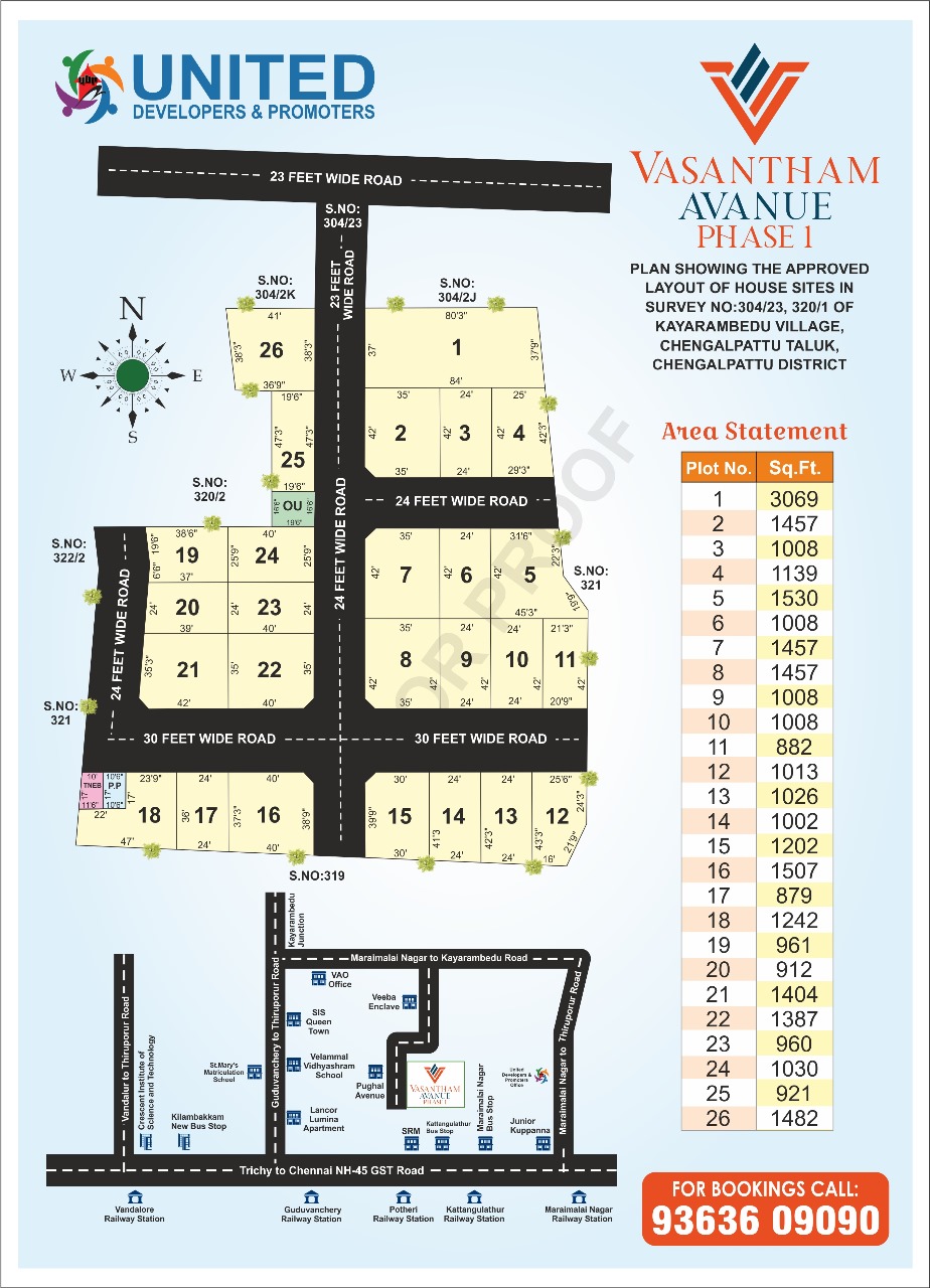 Thank you for showing interest in Vasantham Avenue, a premium residential project by United Developers & Promoters. This DTCP & RERA approved villa plot community offers plots ranging from 540 sqft to 1500 sqft, perfect for building your dream home.
